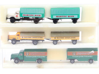 BREKINA 'HO' (ALLEMAGNE) Ensemble de 3 camions semi-remorque avec remorque
