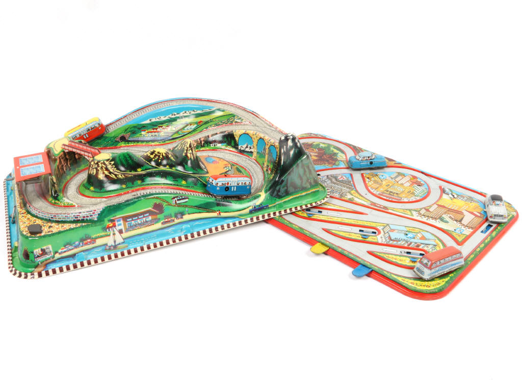 en tôle lithographiée & plastique - certains moteurs à revoir - dimensions du plus grand : 53 x 38 cm - on y retrouve notamment la marque TECHNOFIX