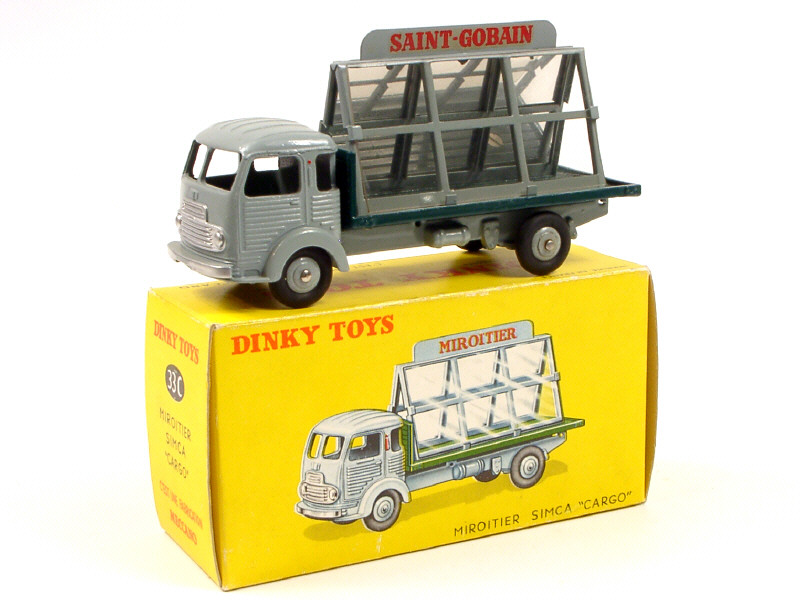 DINKY TOYS (FRANCE) 33C SIMCA CARGO Miroitier 'SAINT GOBAIN' (version avec jantes convexes) gris, plateau vert foncé & jantes grises