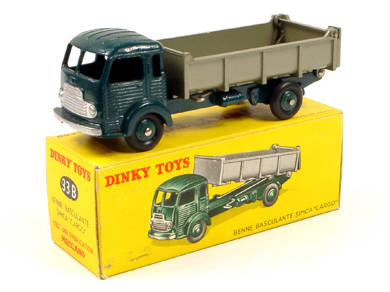 DINKY TOYS (FRANCE) 33B SIMCA CARGO Benne basculante vert foncé, benne gris métal (intérieur strié)