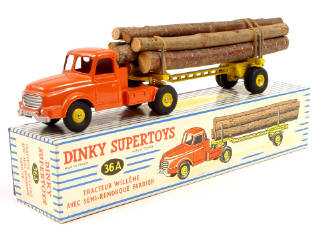DINKY TOYS (FRANCE) 36A WILLEME Fardier (version avec jantes convexes & remorque ajourée) orange & jaune