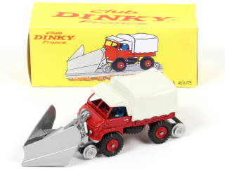 CLUB DINKY FRANCE CDFH2 MERCEDES UNIMOG Camion-plateau rail-route chasse-neige rouge & gris métal