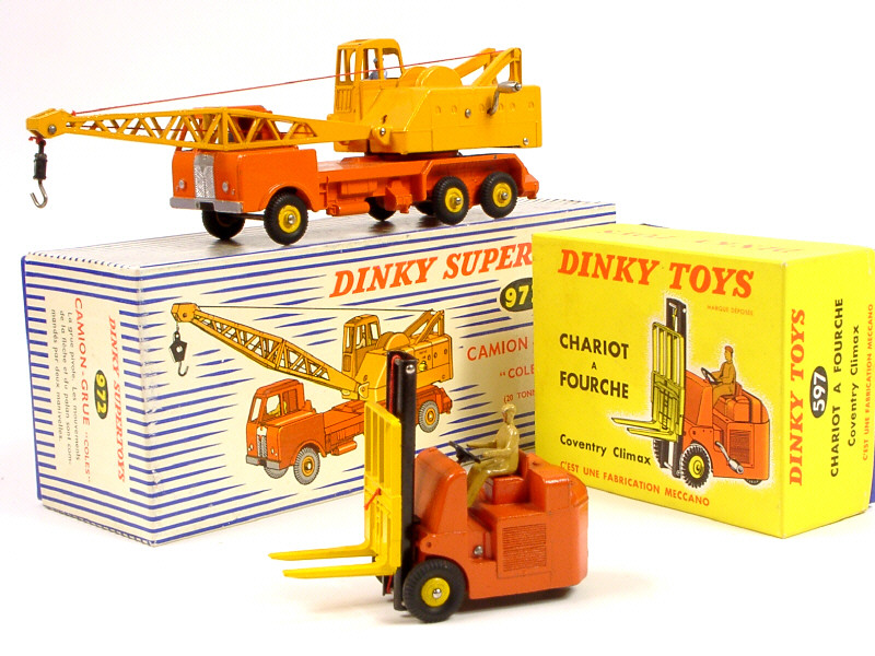 DINKY TOYS (FRANCE) 597 COVENTRY CLIMAX Chariot élévateur (version avec jantes convexes) orange & jaune