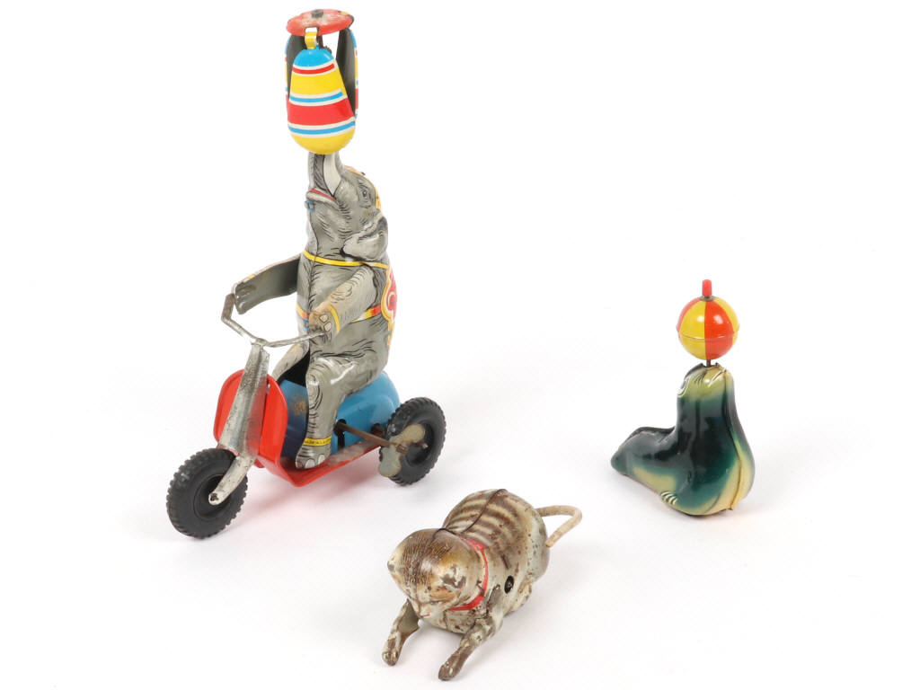 DIVERS (ALLEMAGNE) Ensemble de 3 jouets mécaniques en tôle litohgraphiée