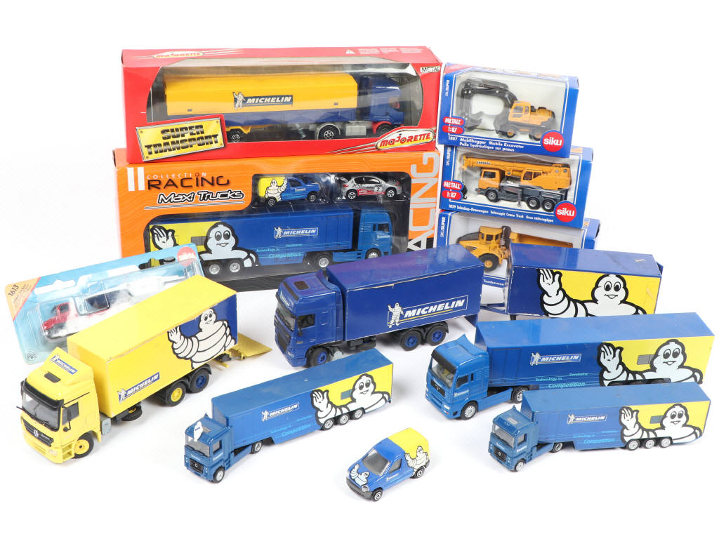 comprend les modèles : MERCEDES, RENAULT & DAF - petits éléments cassés - on y retrouve les marques : SIKU, MAJORETTE & JOAL - 6 modèles en boites ( b à c )