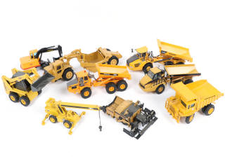 comprend les modèles : VOLVO & CATERPILLAR - petits éléments cassés - on y retrouve les marques : JOAL, NZG & NORSCOT