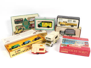 comprend les modèles : SPYKER, BEDFORD & SIMCA - on y retrouve les marques CORGI & NOREV - 7 coffrets en états ( b à c )