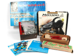comprend les marques : MECCANO & FISCHER TECHNIK - les coffrets semblent complets - les 2 coffrets en etat "c"