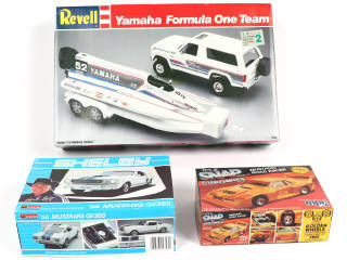 comprend les modéles : FORD MUSTANG & COBRA - on y retrouve les marque : MONOGRAM, MPC & REVELL - semblent complètes - divers échelles 1/32, 1/25 & 1/24