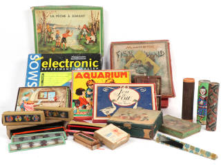 on y retrouve notamment : le jeu de l'oie & la pêche à l'aimant - avec manques et parties cassées
