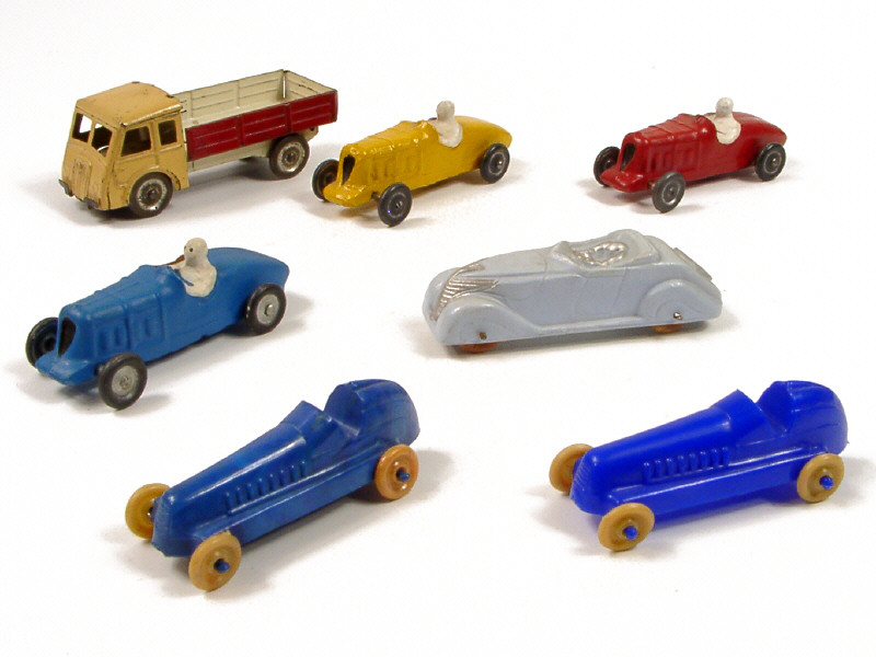 états de 'A' à 'R' - 3 modèles copie en plâtre & farine, 2 modèles en plastique, un modèle en celluloïd & camion en tôle peinte
