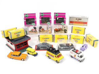 comprend notamment les marques : CORGI & GAMA - on y joint un garage - possibilité de manques ou parties cassées