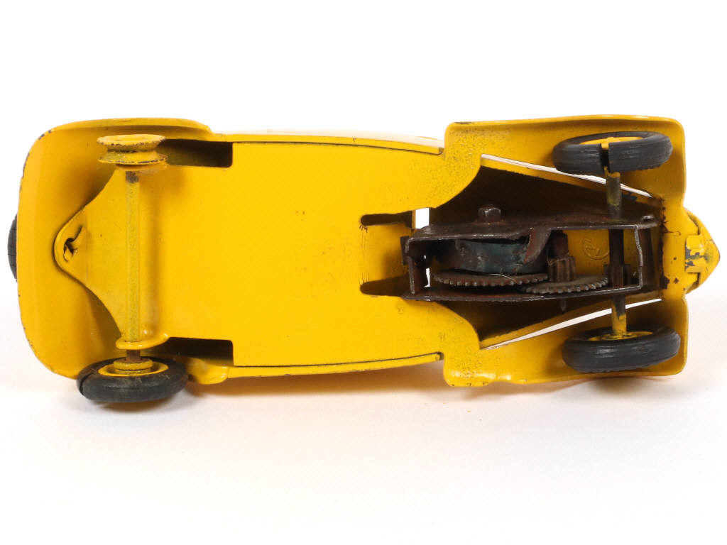 longueur : 12 cm - réalisation en zamac moulé avec châssis en tôle, moteur à clef (à revoir, désolidarisé) & direction - pneus plus ou moins coupés (2 exemplaires non d'origine & un autre manquant)
