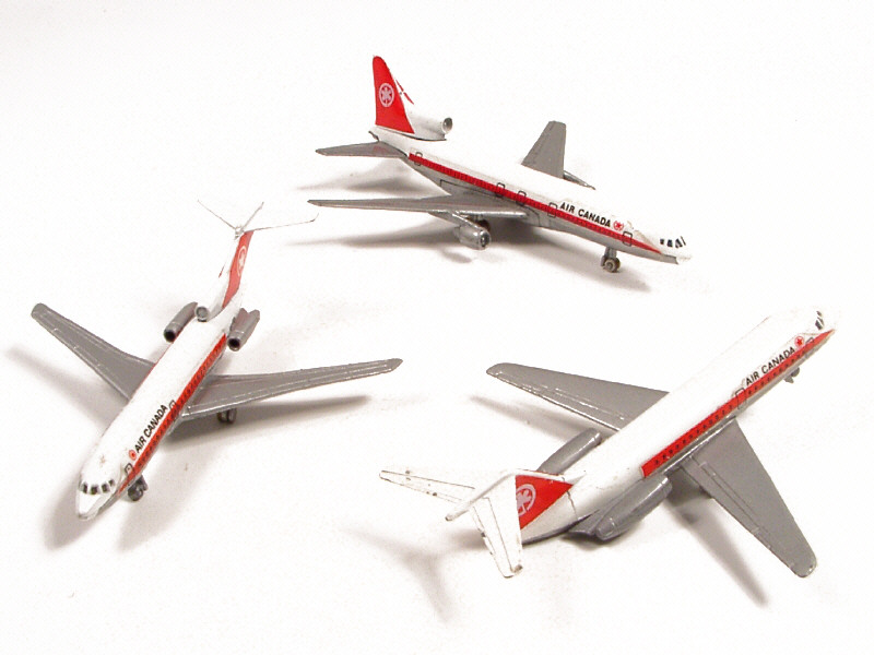 LINTOYS (HONK KONG) Ensemble de 3 avions 'AIR CANADA' gris, blanc & rouge