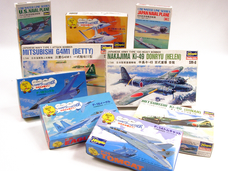 HASEGAWA (JAPON) Ensemble de 7 maquettes d'avions à monter