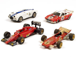 comprend : une CUNINGHAM-FERRARI, une FERRARI DINO 308 GT4, une FERRARI 312B1 & une FERRARI F1 - quelques petits manques - including the aforementioned models - some small parts missing