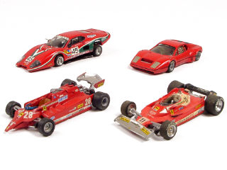 comprend : une FERRARI 512BB Le Mans, une FERRARI BB, une FERRARI 312T3 & une FERRARI 126 F1 TURBO KKK - quelques petits manques - including the aforementioned models - some small parts missing