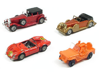 miniatures reproduisant les marques : LAGONDA, JEEP, ALFA ROMEO & DUESENBERG - on y retrouve les marques : MATCHBOX, MERCURY & TOMTE - avec manques - some parts missing