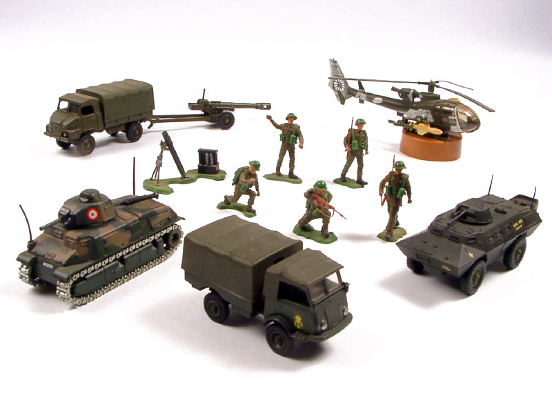 sur socle de présentation - on y joint 5 soldats britanniques & un mortier de marque BRITAINS - on presentation stand - we have added 5 British soldiers & a BRITAINS mortar