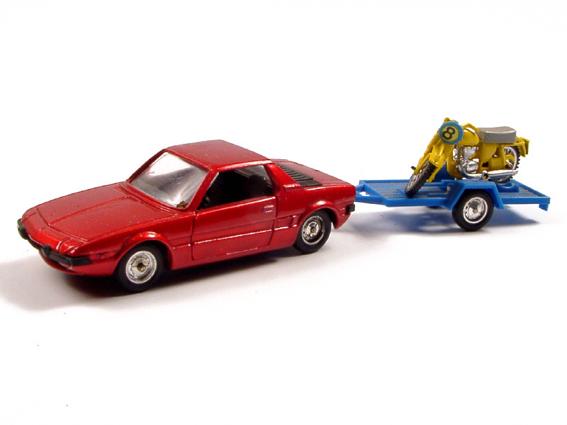 comprend : FIAT X 1/9, remorque & moto de cross (manque guidon droit) - with a FIAT X 1/9, trailer & motorbike (right handle bar missing)