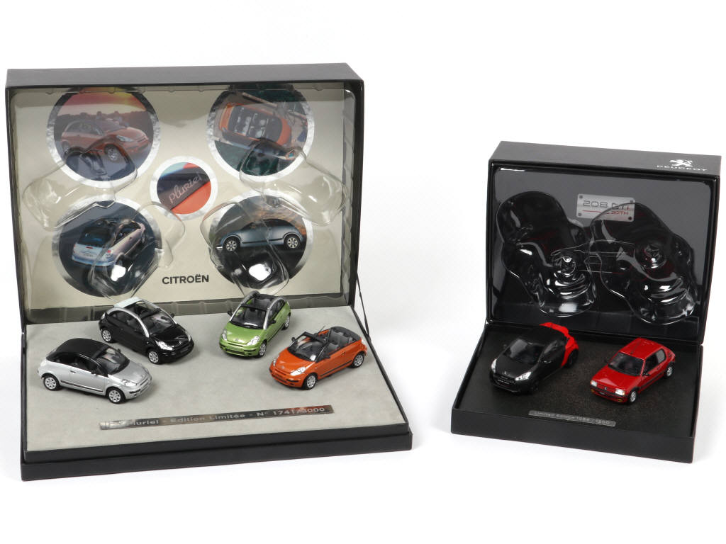 comprend : coffret PEUGEOT 205 & 208 GTI série limitée n°1086/1500 - coffret CITROËN C3 série limitée n°1741/3000