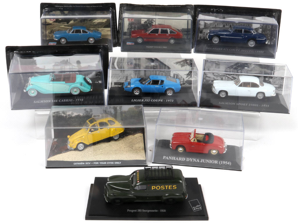 on y retrouve notamment les marques : PEUGEOT, CITROEN & PANHARD - une voiture sans coque de protection - possibilité de petits manques & parties cassées