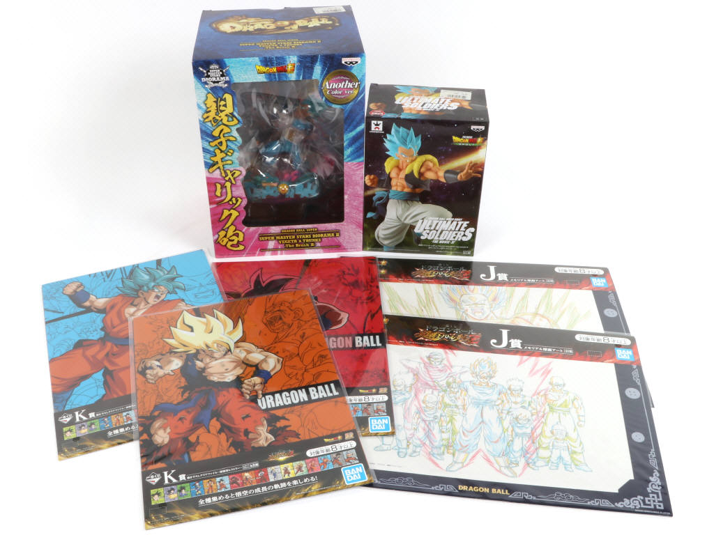 BANDAÏ (JAPON) Ensemble de 2 figurines, 6 pochettes & 2 dessins DRAGON BALL