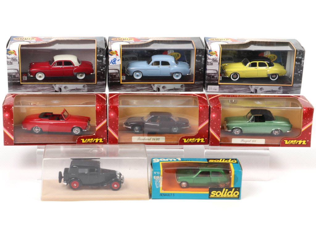 comprend notamment les marques : SOLIDO & VEREM - une boite en état 'b' avec trace de colle