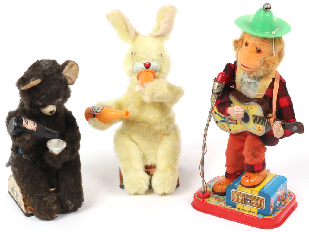 hauteur du plus grand : 32 cm - mécanismes à piles à revoir - quelques manques, restaurations, éléments non d'origine & parties cassées (suivant les exemplaires)