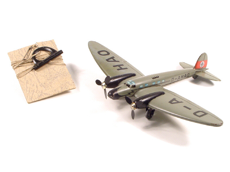 envergure 18,5 cm - immatriculation D-AHAO - avec crochet & ficelle de suspension - hélices changées - dérive restaurée conforme à l'origine - il est à noter que les dérives de ces avions sont souvent restaurées du fait de la présence des croix gammées qui ont souvent été effacées - SUPERBE !