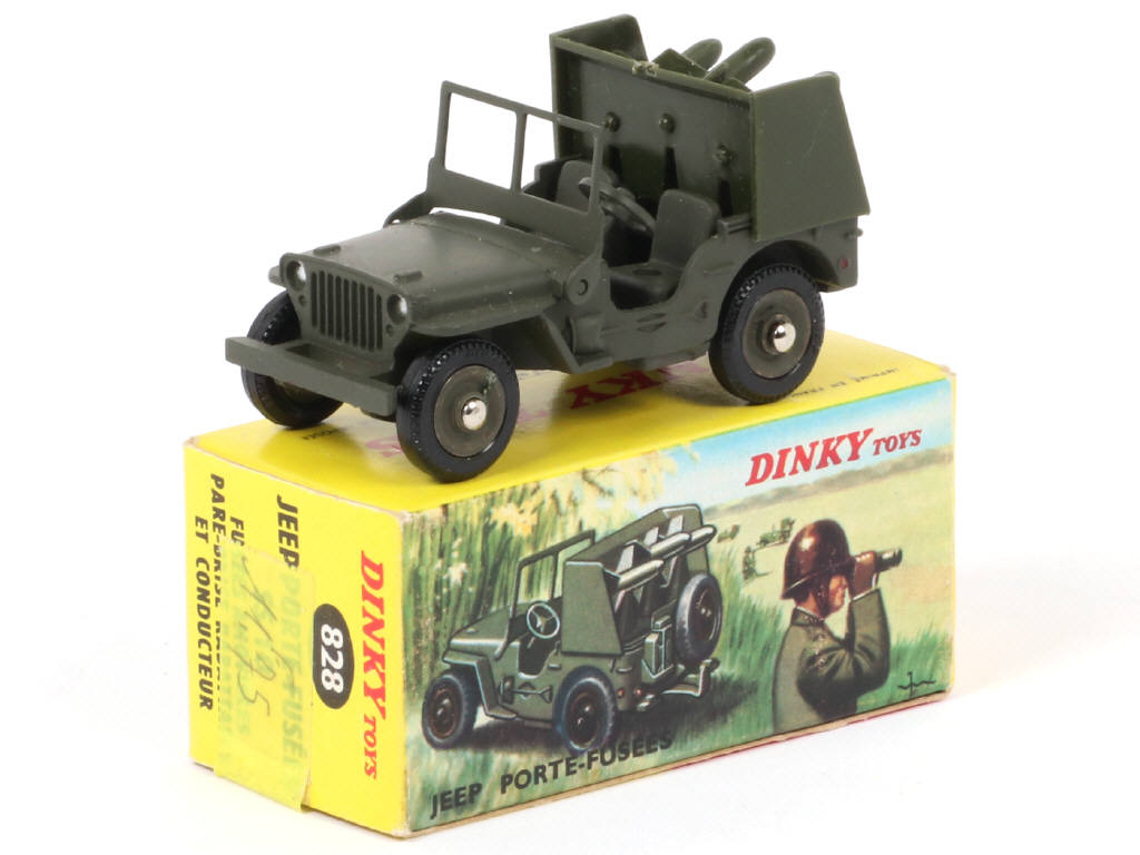 DINKY TOYS (FRANCE) 828 JEEP WILLYS Porte-fusées SS 10 kaki