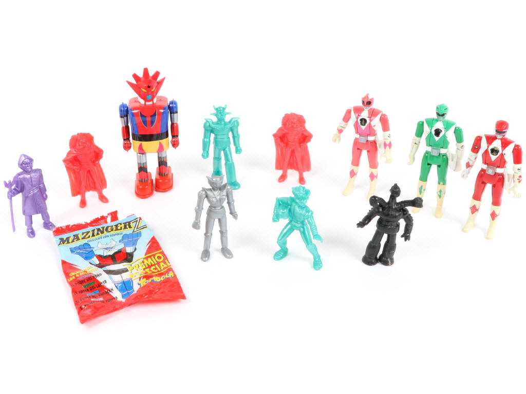 comprend : GETTER ROBO G en état 'b', 7 figurines en PVC MAZINGER Z (avec un sachet ouvert) & 3 POWER RANGERS FLIP HEAD en état 'b' - possibilité de petits manques & parties cassées - on y retrouve les marques BANDAI, MARMIT & GO NAGAI