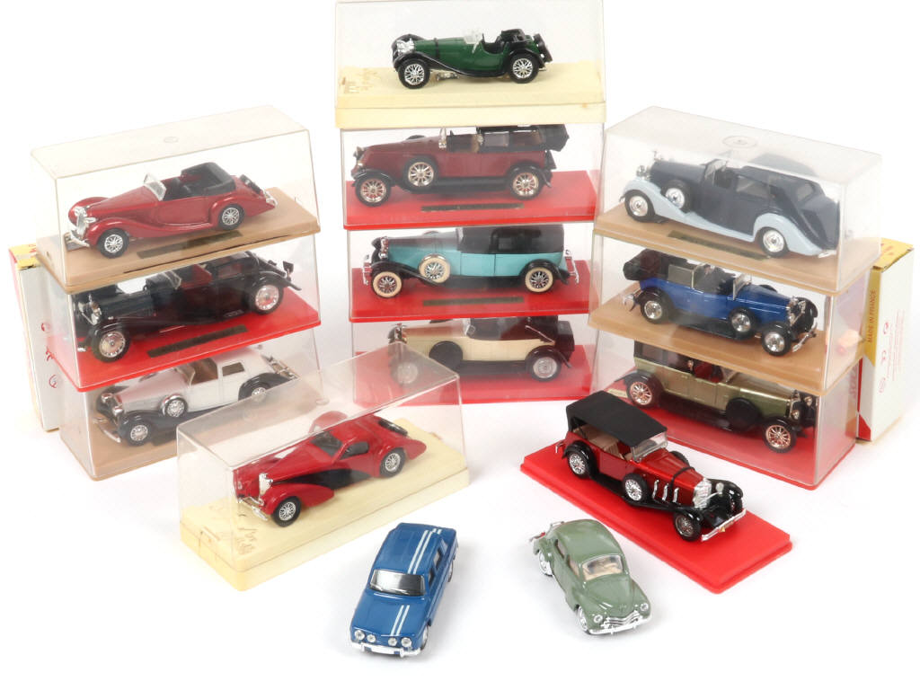 miniatures reproduisant notamment les modèles : RENAULT, MERCEDES & BUGATTI - quelques petits accessoires manquants sur certains exemplaires - certains modèles en état 'A' & boîtes en état 'c'