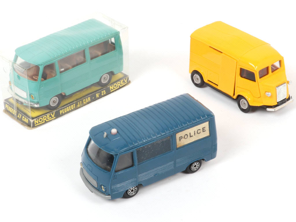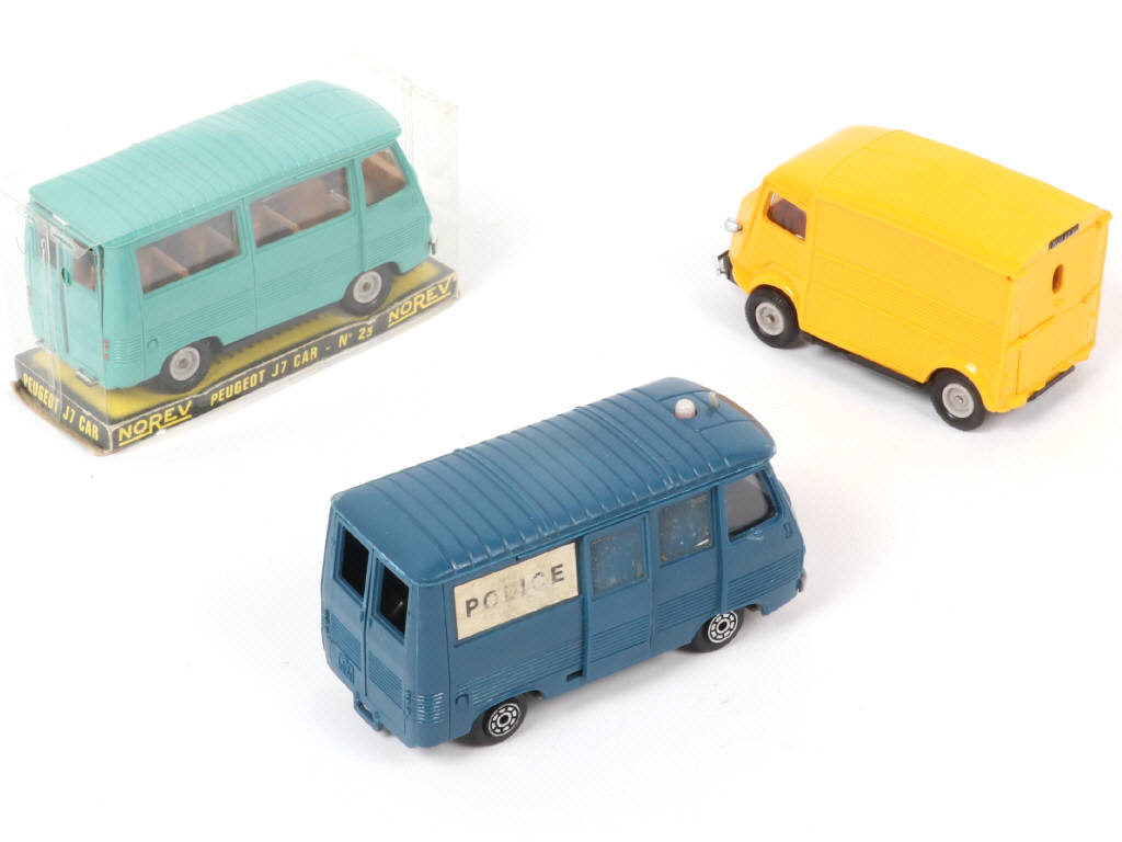 plancher & partie centrale du toit légèrement déformés - socle de boîte légèrement déformé - on y joint un CITROËN 1200 KG en état 'B' (carrosserie plus ou moins déformée) & un PEUGEOT J7 'POLICE' en état 'C' (gyrophare décoloré, antenne incomplète, autocollants plus ou moins altérées)