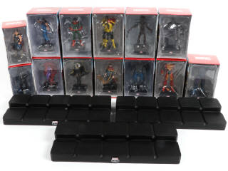 jamais ouverts, sous blisters - on y retrouve notamment les modèles : DR. STRANGE, JEAN GREY, THOR & STORM - on y joint 3 socles de présentations MARVEL UNIVERSE (certains exemplaires cassés & légèrement encrassés)