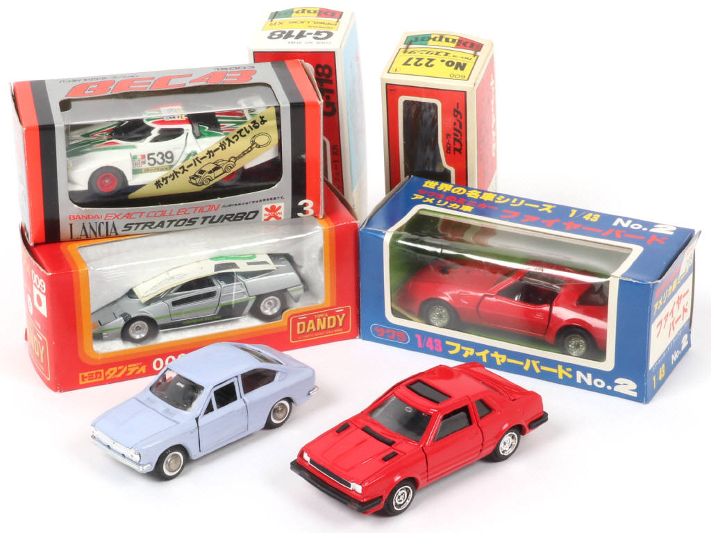 on y retrouve les marques : BANDAÏ, TOMICA DANDY, ASAKUSABASHI & YONEZAWA (un exemplaire en état 'B') - les boîtes sont en états 'a' & 'b'