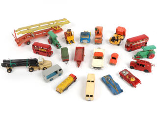 on y retrouve notamment les marques : DINKY TOYS, CORGI TOYS & CIJ - avec manques & parties cassées