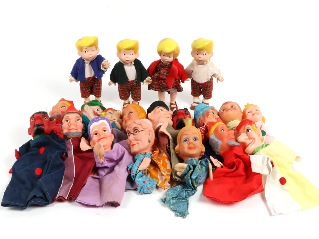 année 1980 - réalisations en plastique - on y joint 16 marionnettes à main - ensemble légèrement encrassé & petits frottements par endroits