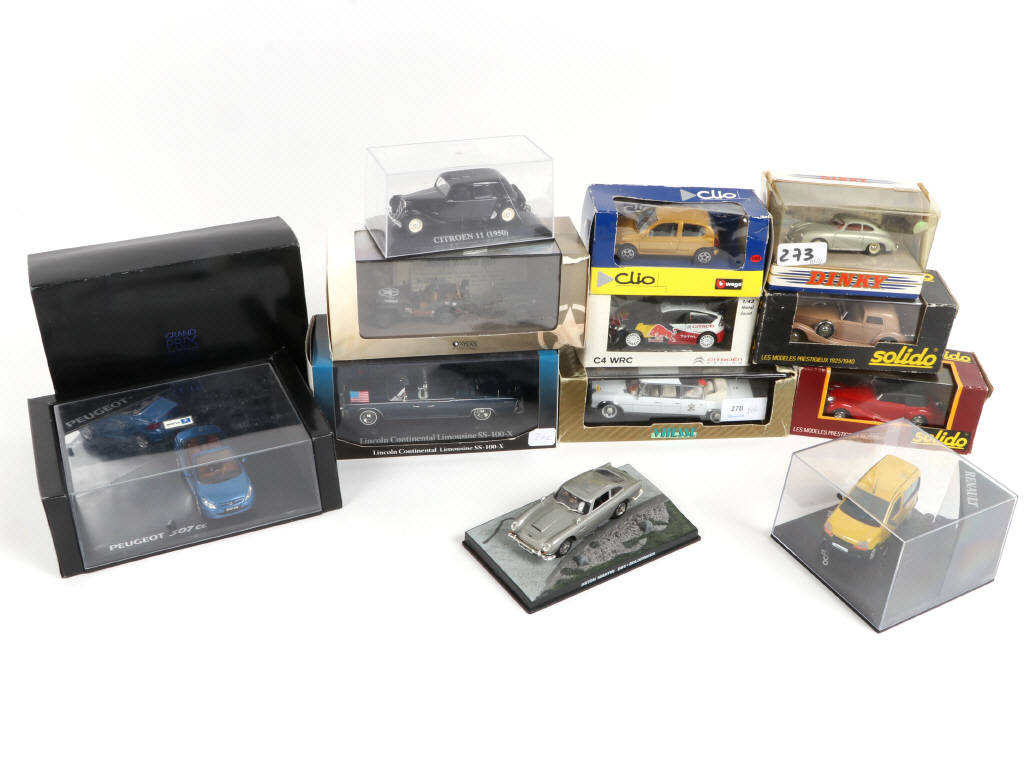 on y retrouve notamment les marques : DINKY TOYS, SOLIDO & VITESSE - états des boîtes de 'a' à 'c' (déformées, rayées & déchirées par endroits)
