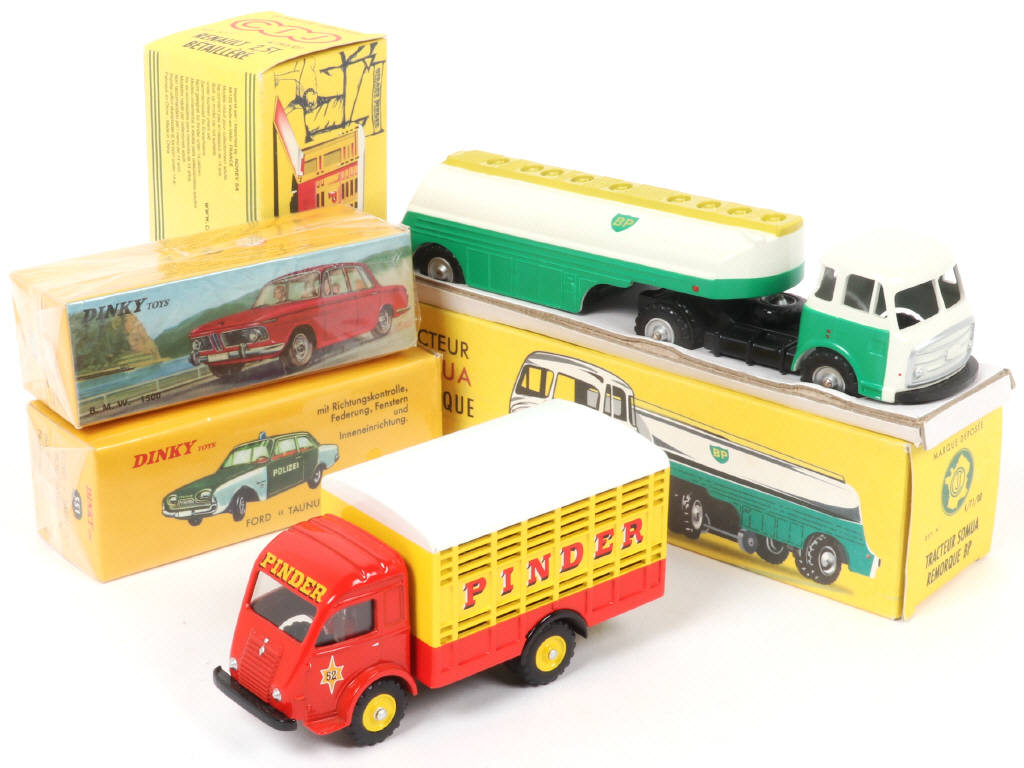 rééditions DINKY TOYS & C.I.J - on y retrouve les marques : EDITIONS ATLAS (sous films plastique jamais ouverts) & C.I.J/NOREV (boîtes en état 'b', dont une légèrement décolorée avec cales manquantes, un certificat pour le RENAULT)