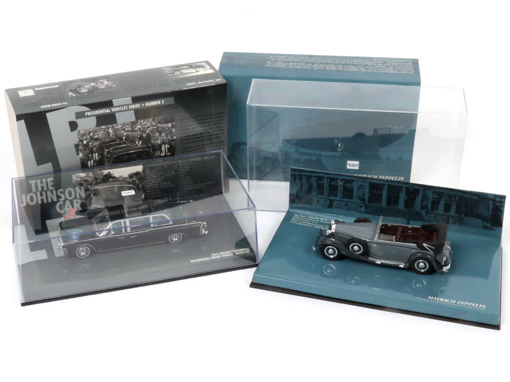 miniatures reproduisant les modèles : MAYBACH & LINCOLN (voiture présidentielle du président Johnson)