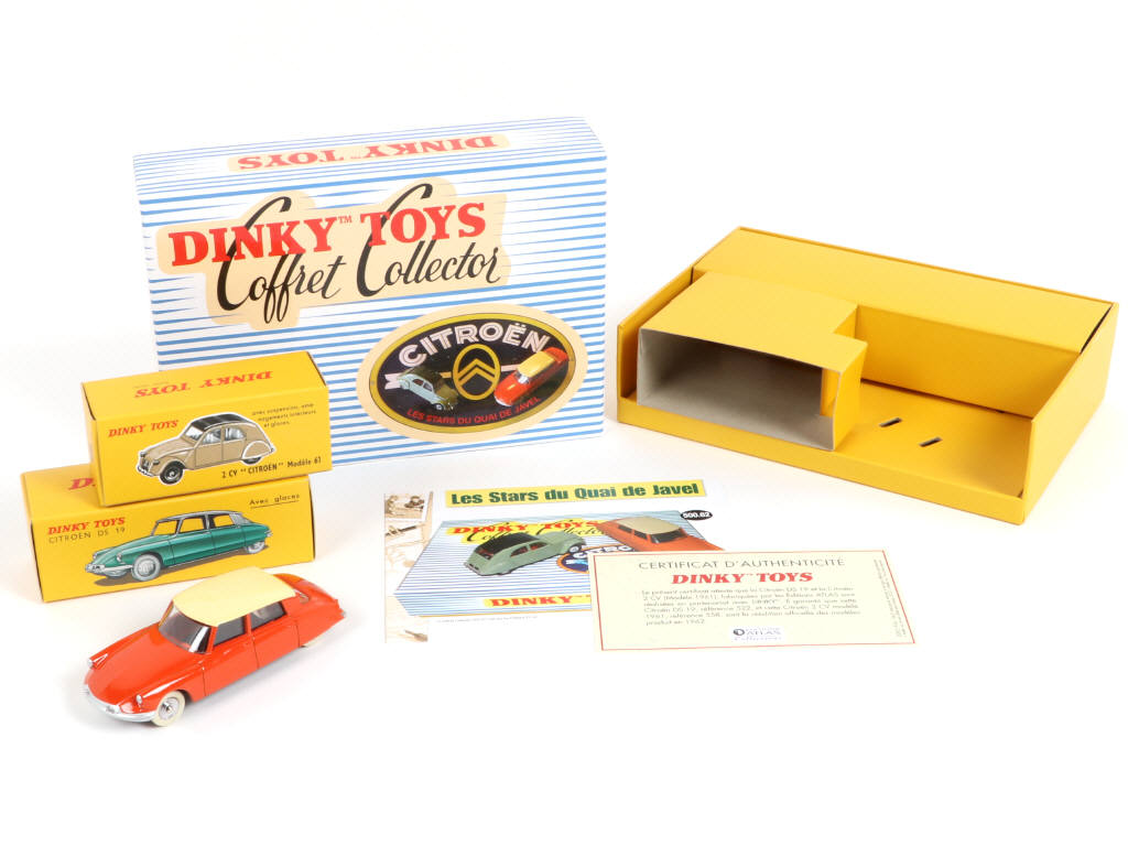 contient les modèles : DS 19 & 2 CV 1961 (vert d'eau) - avec certificat d'authenticité & petit dépliant présentant les modèles