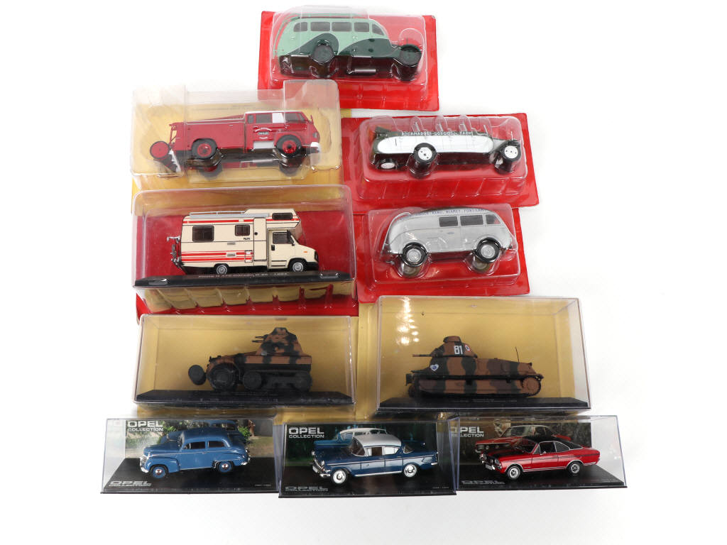 comprend notamment les modèles : SOMUA S-35 & CITROËN U23 - on y joint 3 OPEL non d'origine - sous blisters jamais ouverts - états des boîtes 'a' & 'b'