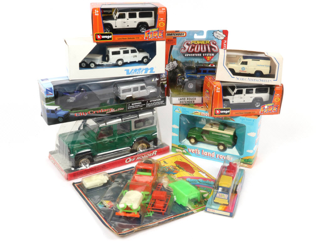 DIVERS Ensemble de 9 LAND ROVER DEFENDER, un tout-terrain & différents accessoires