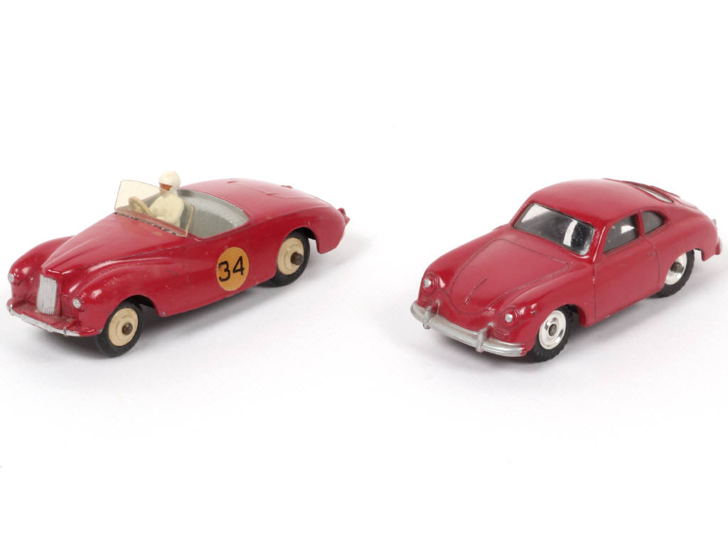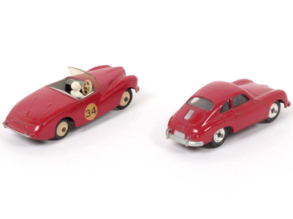 miniatures reproduisant les modèles : SUNBEAM ALPINE (carrosserie très légèrement décolorée avec quelques petites taches par endroits, pneus séchés & légèrement affaissés) & PORSCHE 356A