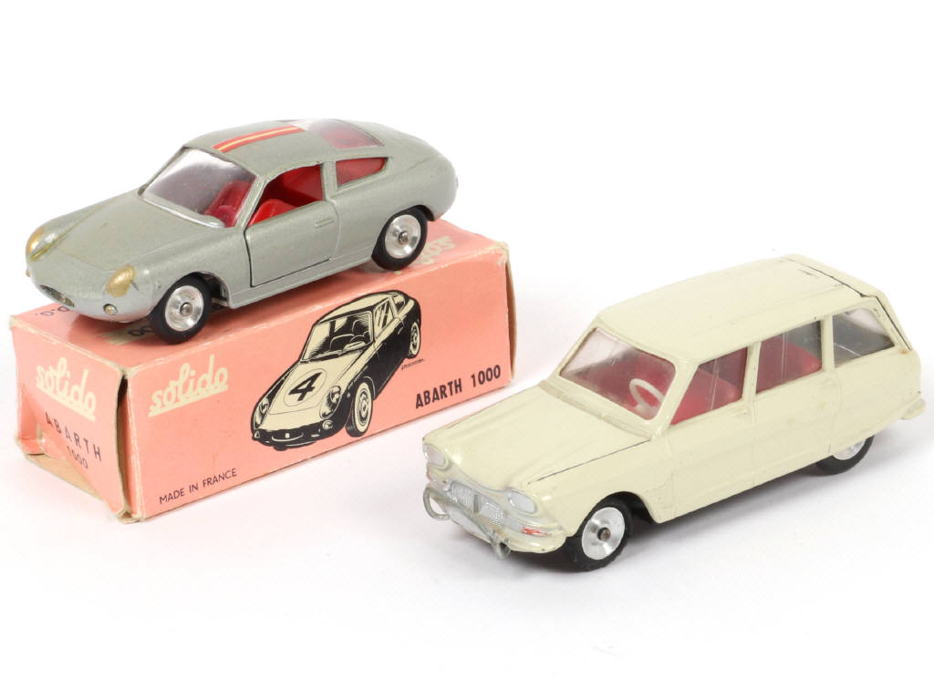 sans numéro de compétition - petites traces de vernis d'origine sur la carrosserie par endroits - accrocs & petites déchirures sur la boîte - on y joint une CITROËN AMI6 break de la marque (sans boîte) en état 'C' (pare-choc en partie désolidarisé & déformé, retouches)