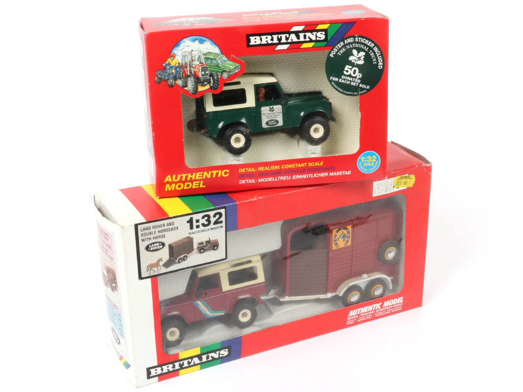 BRITAINS (GB) Ensemble de 2 LAND ROVER & un van à chevaux