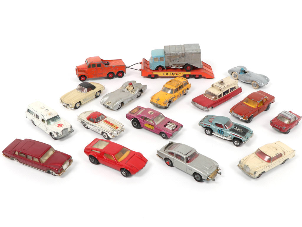 manques & parties cassées - traces d'oxydation - on y retrouve les marques : MATCHBOX, CORGI TOYS, SPOT ON & CRESCENT TOYS