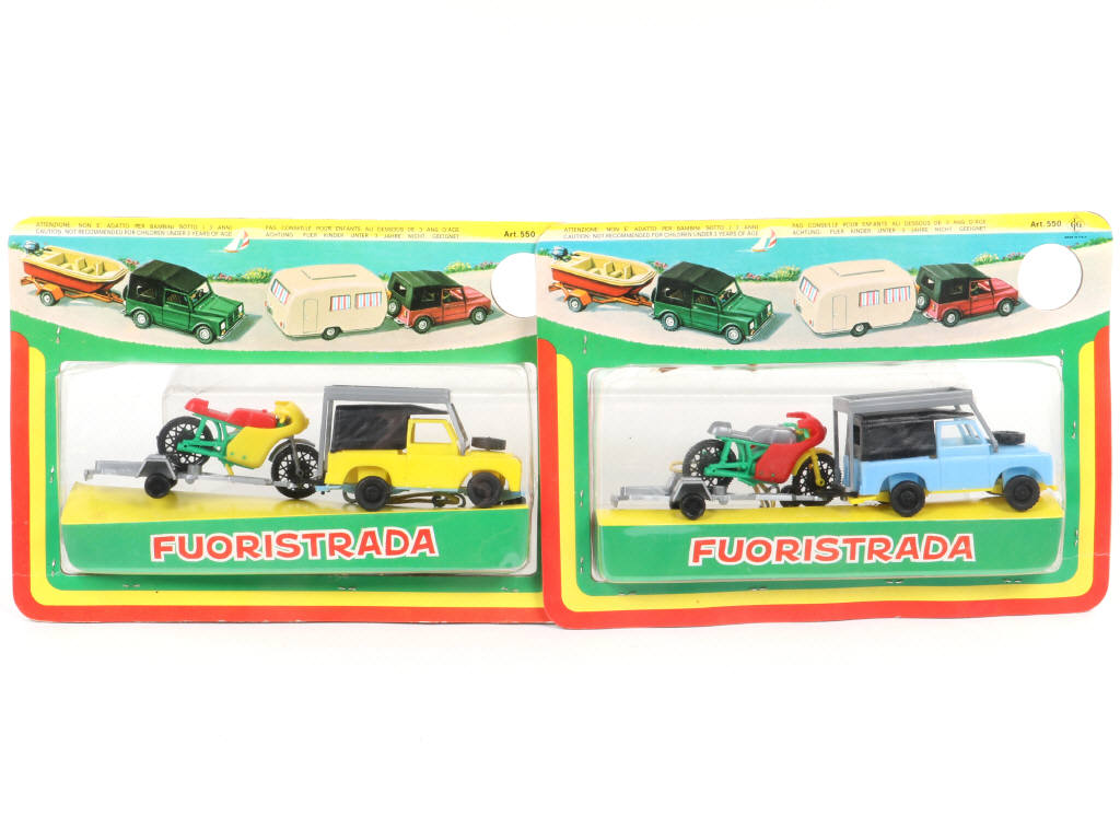 C.G.G.C. (ITALIE) Ensemble de 2 LAND ROVER avec motos sur remorques