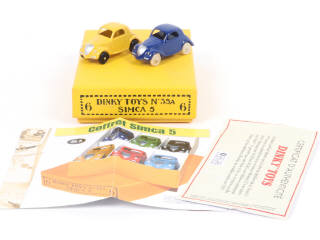 réédition DINKY TOYS FRANCE - contient : 6 SIMCA 5 (3 avec roues noires & 3 avec roues blanches), cales de boite, certificat d'authenticité & documentation